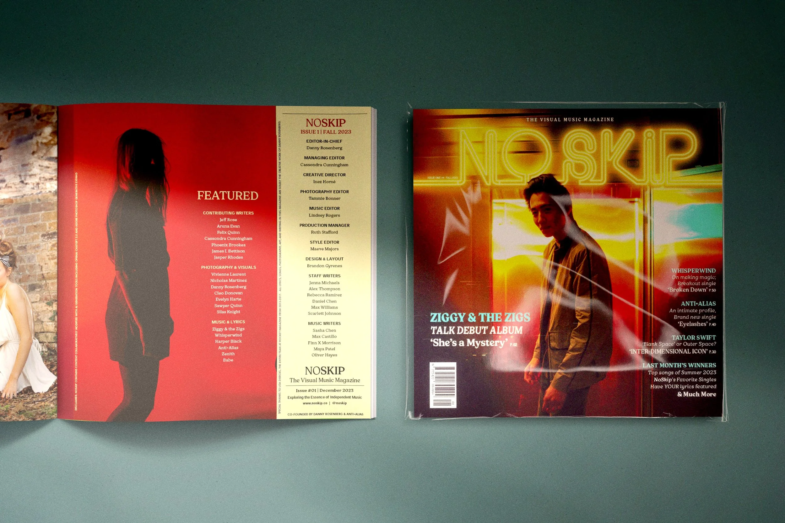 NoSkip is a full-length music magazine designed as a functional publication. It combines editorial photography, written features, and an embedded audio system that allows each spread to open into an original track. The goal was to see how a familiar physical format could shift a reader’s perception of new music, and how print design can act as the organizing force for sound, tone, and emotional pacing.